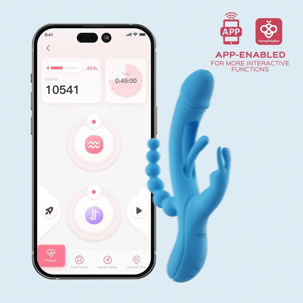 Trilux is an expertly designed tapping, vibrating rabbit vibe that plays with 4 of your stimulation points and pleases all your erogenous zones. Four times the fun for the biggest, and best, blended orgasms! Can also be controlled without the app!