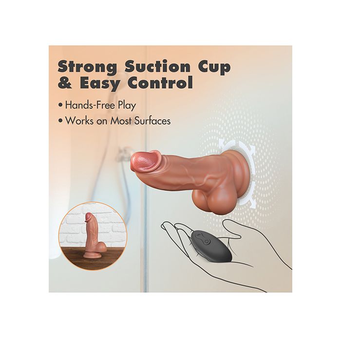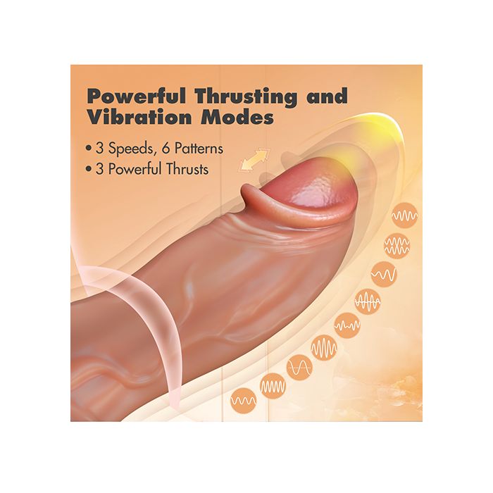 Enjoy 3 powerful thrusting speeds and 9 vibration modes, providing endless ways to customize your pleasure. The strong suction cup base allows for hands-free fun and is harness & strap on compatible for even more versatility.