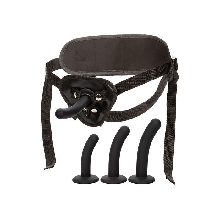 Introducing the Silicone Curve Pegging Kit, a complete package designed for unforgettable pegging experiences. This kit includes a universal harness with fully adjustable waist and thigh straps, ensuring a secure and comfortable fit that can be tailored to your body shape. The harness features a supportive and form-fitting design, providing stability and control during play. Its discreet snap design allows for easy swapping of the three included curved silicone probes. These probes come in different sizes, allowing you to customize your experience and explore various levels of pleasure. Crafted from high-quality silicone, the probes offer a velvety smooth texture. The curved design targets sensitive areas, delivering precise stimulation and intensified sensations. Whether you're a beginner or an experienced user, the Silicone Curve Pegging Kit caters to your desires. Embrace the versatility and freedom this kit offers, as you indulge in thrilling pegging adventures.