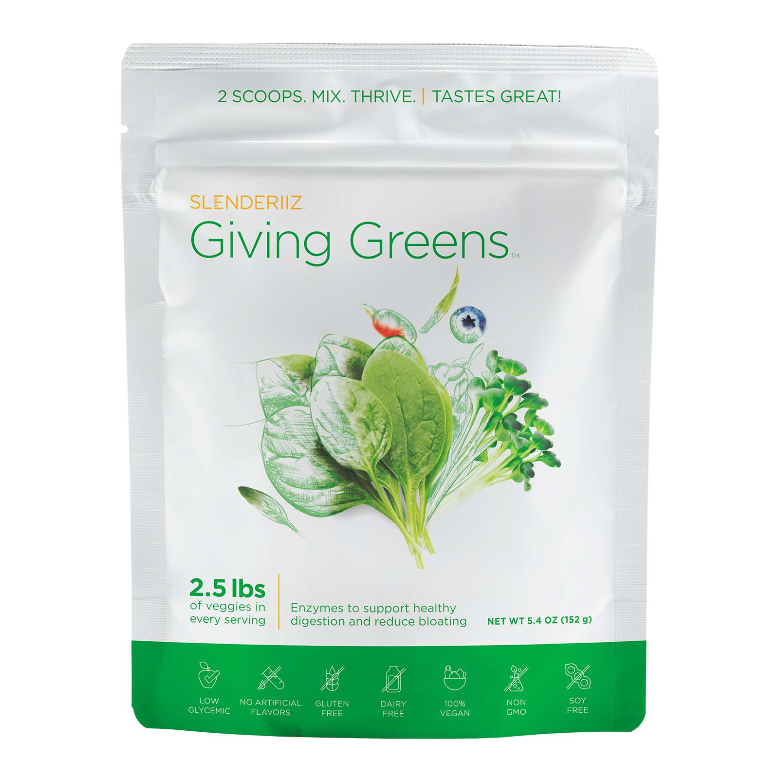 Giving Greens® is a whole-food veggie, nutritive powdered drink mix that makes it easy to fuel your body with vital phytonutrients, vitamins and minerals. This guilt-free nourishment features sprouted-seed nutrition, a probiotic and prebiotic system and an enzyme-rich superfruit blend that provides your body with essential nutrients to boost immunity, support cardiovascular health, fight free radicals and aid digestion.