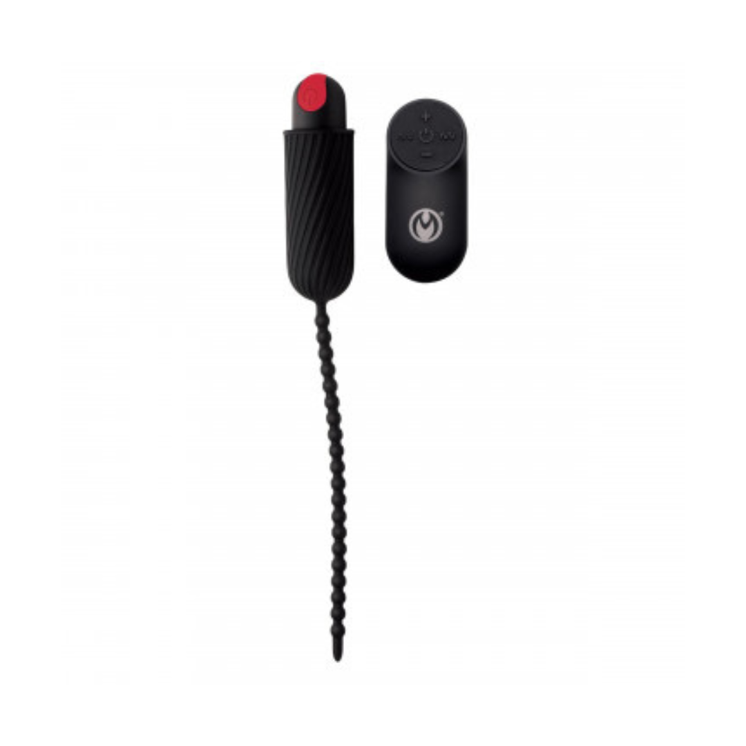 Snake these small, silky, silicone beads down your sensitive shaft and enjoy the ride! The small but eighty beads that make up this urethral sounding chain are bound to give you shivers. Choose between the 4 speeds and 7 patterns of vibration giving you a total of 28 different options. Use the battery operated remote control to change the vibe settings, or hand to a partner to double your fun!